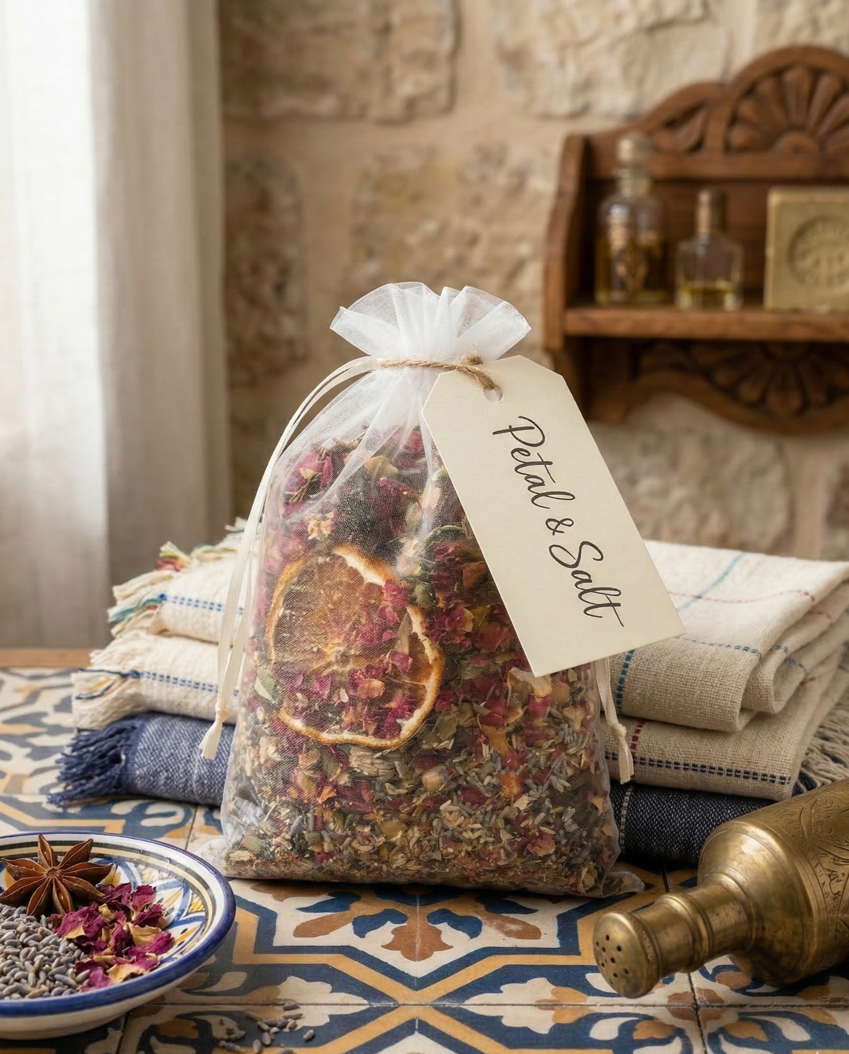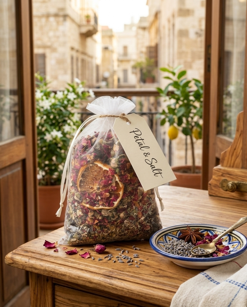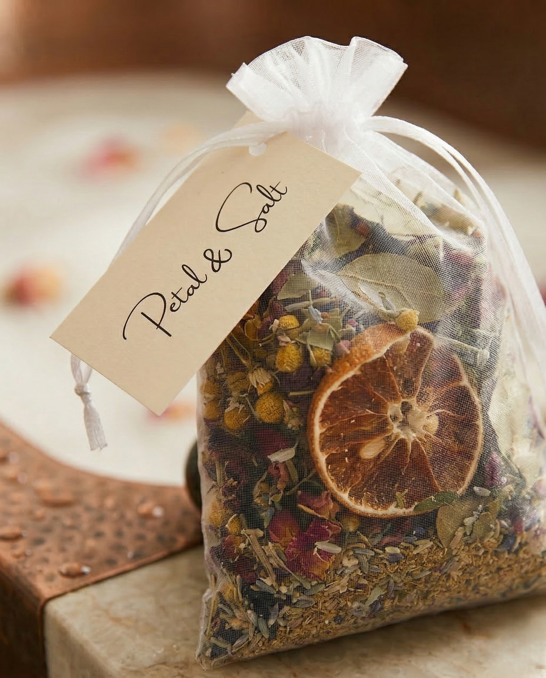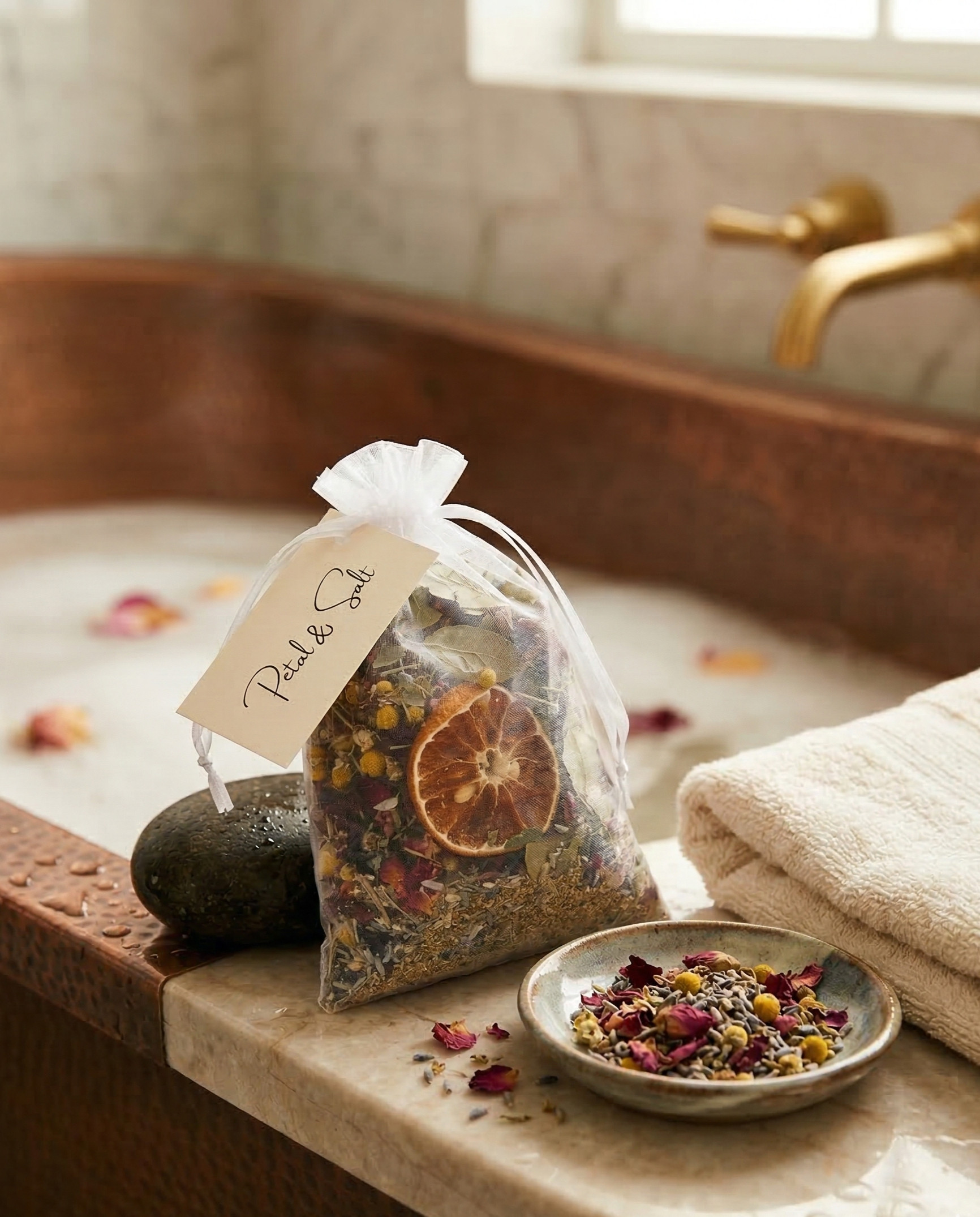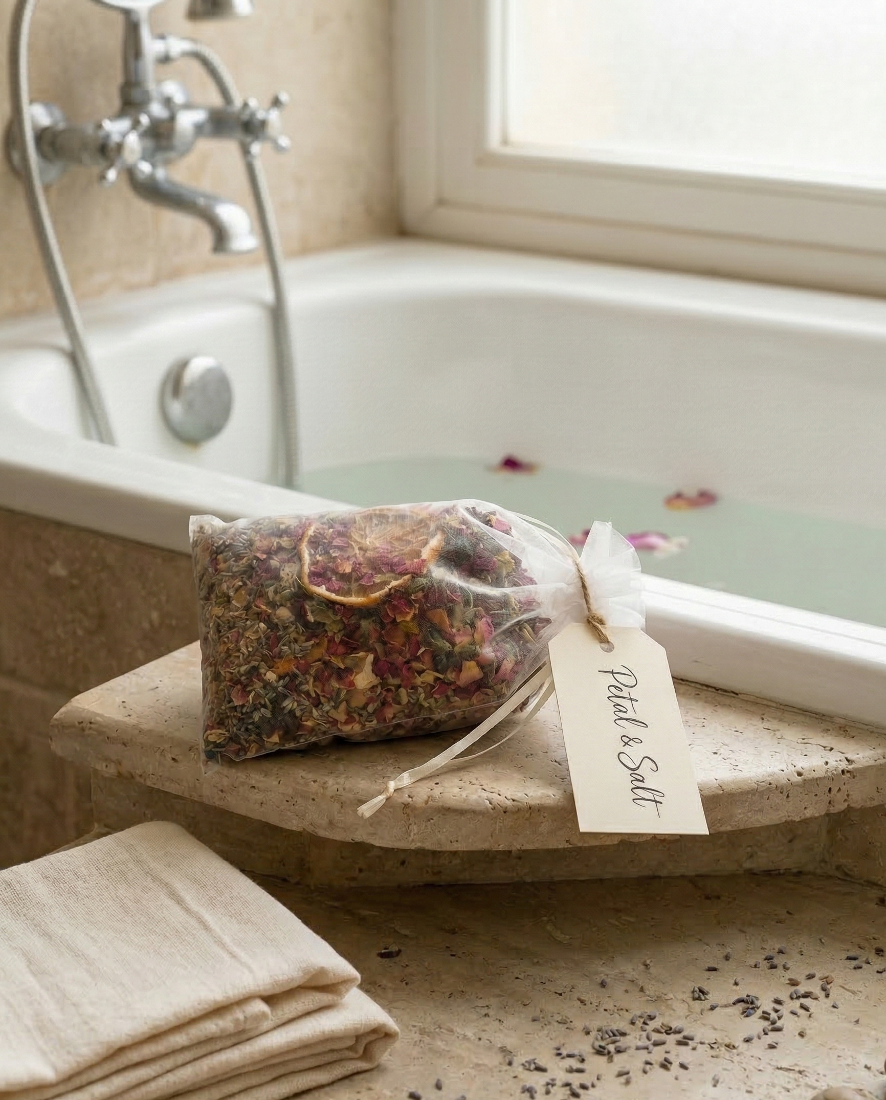 Drop the tea bag into a warm bath. Let it soak for 3 minutes as the water transforms. Step in, soak, and breathe.